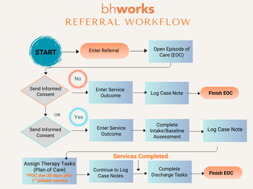 Infographic flow chart of the Michigan specific workflow for Entering a Referral.