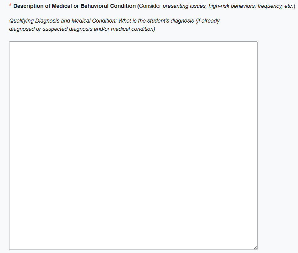 What is the student’s qualifying diagnosis or medical condition? (The specific ‘reason to treat’ is not a Medicaid specific requirement, but should be included if available.)