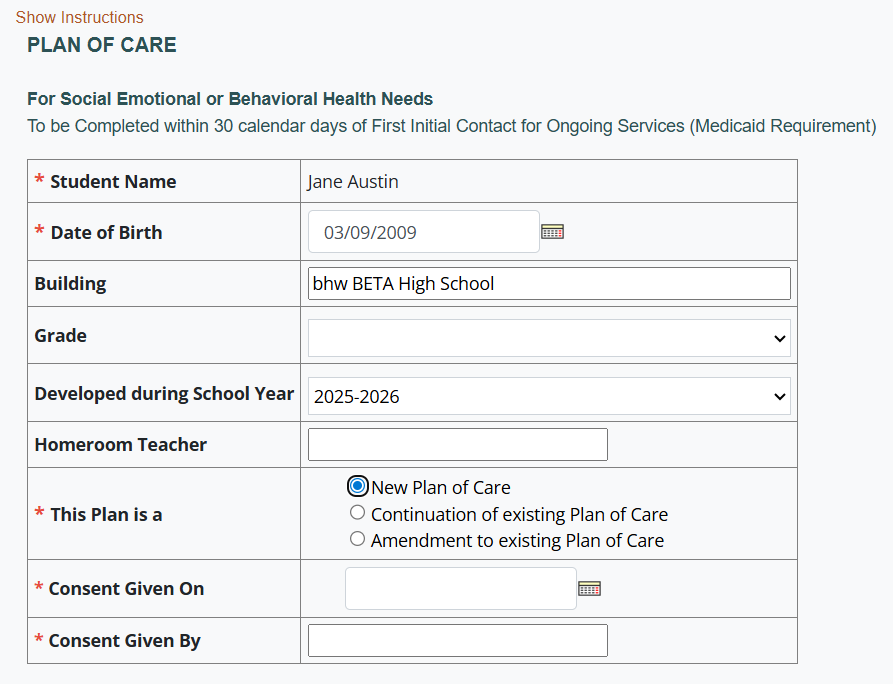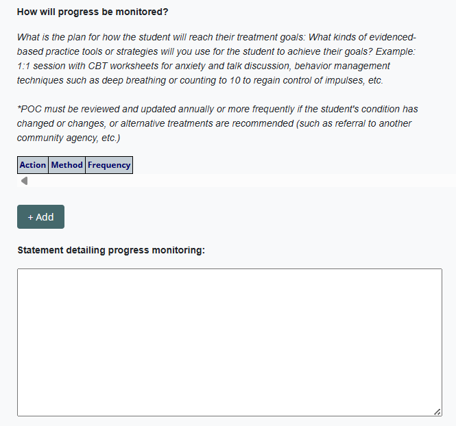 Students may also have an amended POC if they are working with a new provider (ex. provider change due to a maternity leave.) This will allow the new provider to review the POC, confirm the goals, objectives, and duration/frequency of services, and sign off on the amended plan.