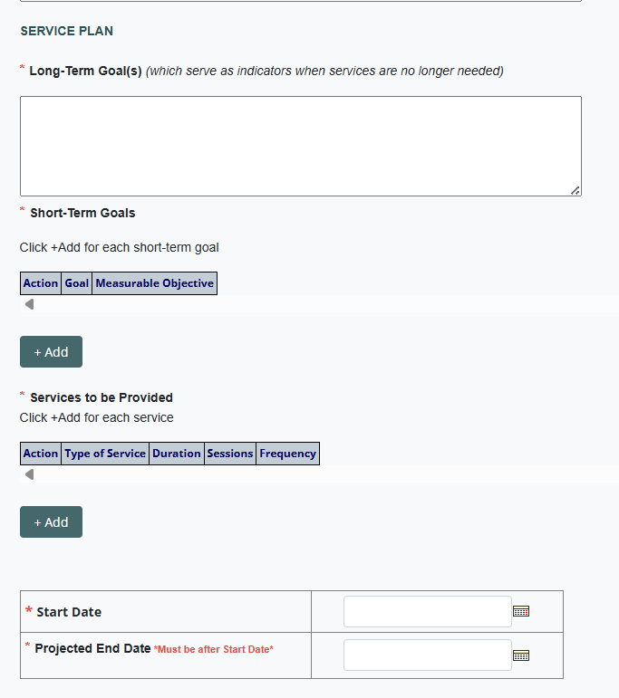 - Service Plan Section