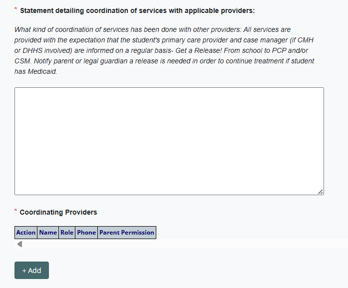 Collaboration between the school and community providers is mandated to coordinate treatment and to prevent duplication of services.