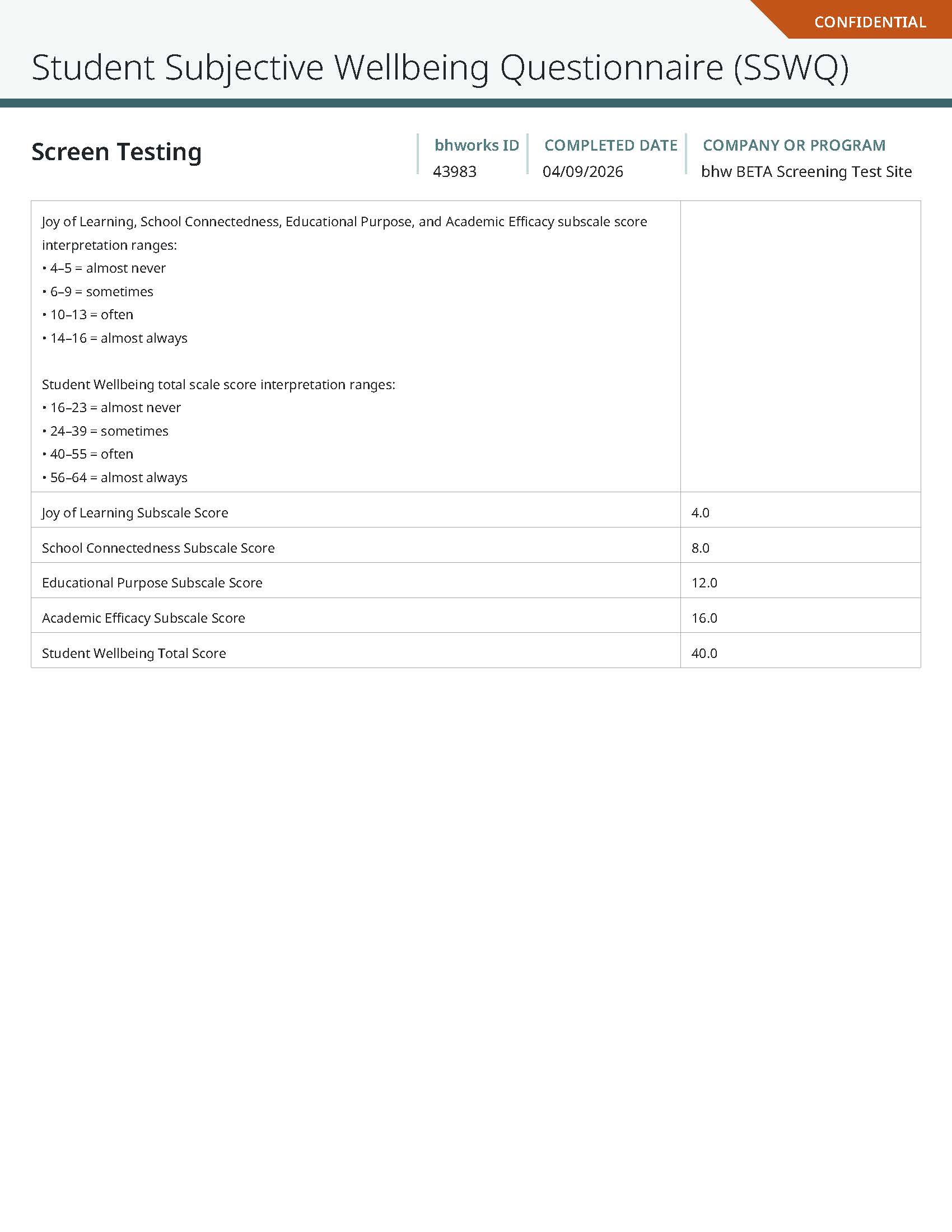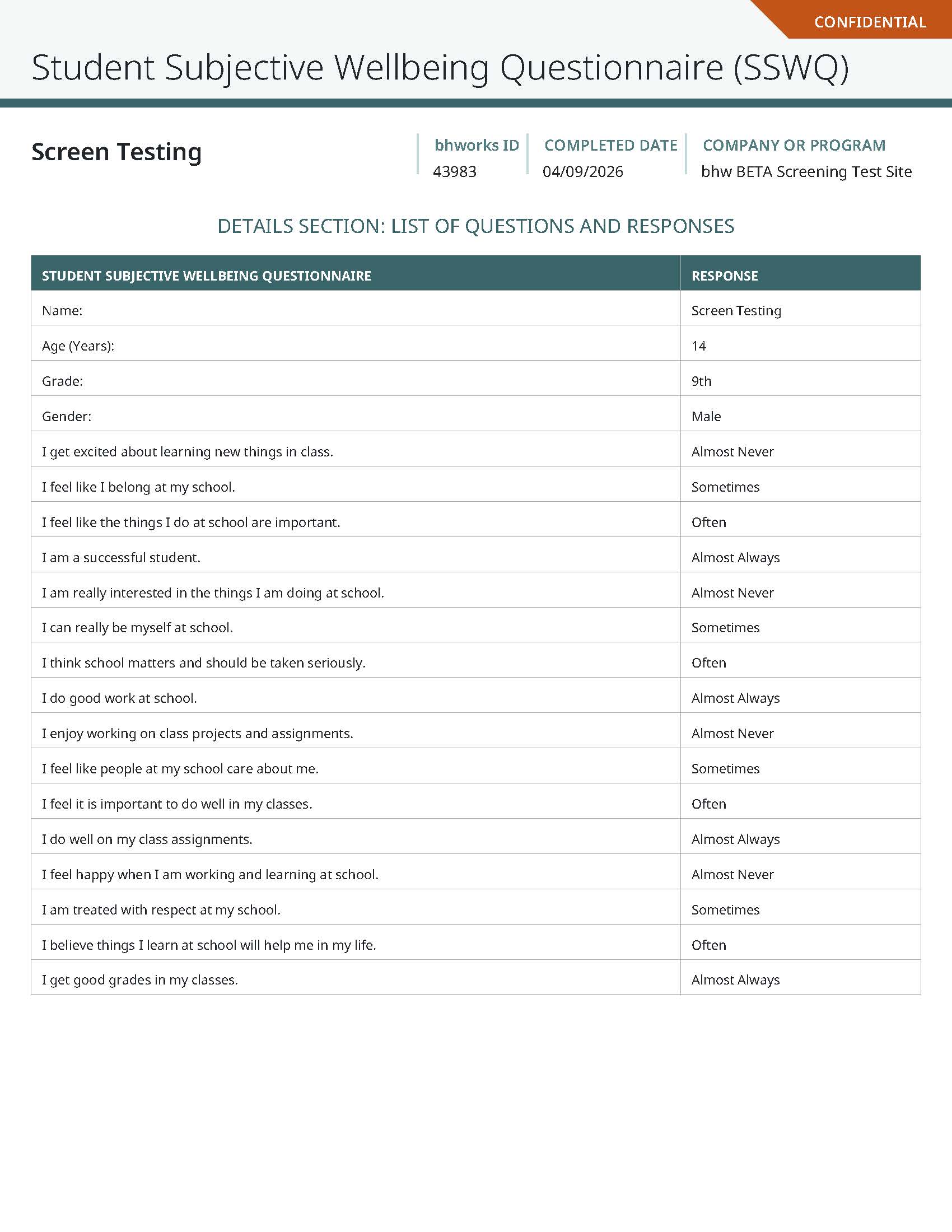 Student Subjective Wellbeing Questionnaire (SSWQ)